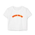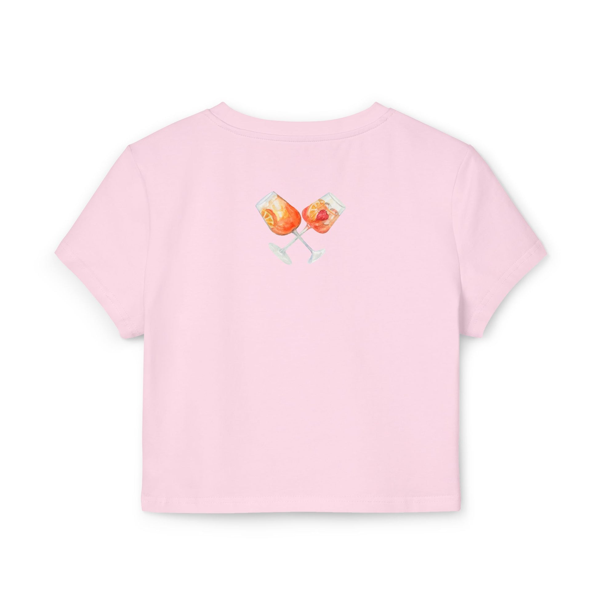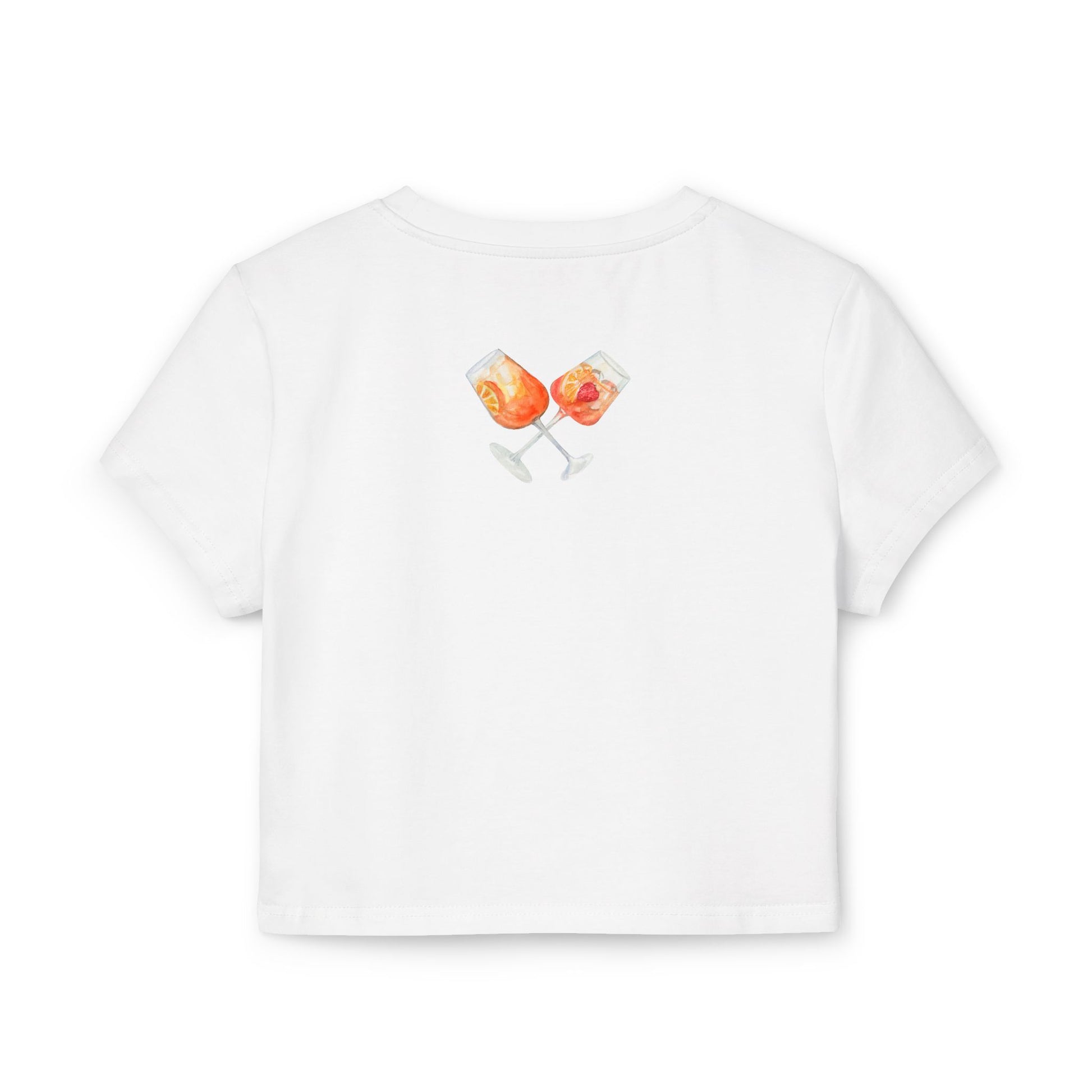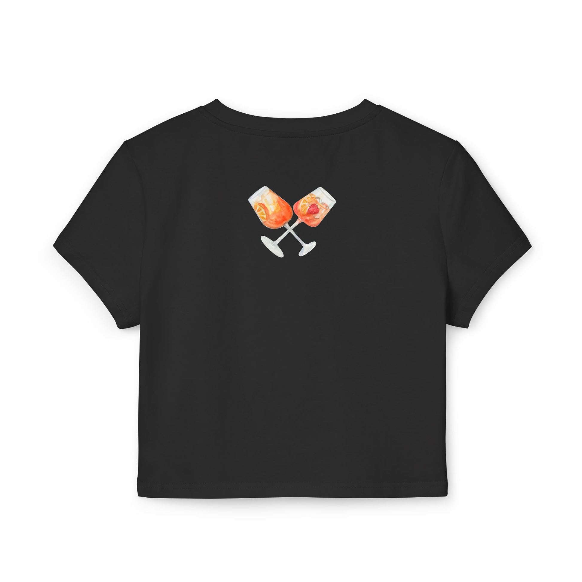 The SPRITZ WHORE crop top is a high-fashion wink to Italian indulgence and unapologetic femininity. With vintage-inspired arch lettering in vibrant citrus tones, this piece pairs playful rebellion with elevated simplicity — a statement for those who savor every moment (and every sip).