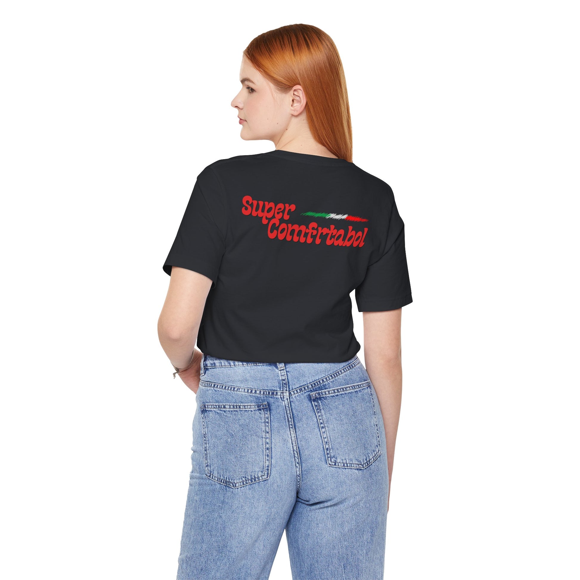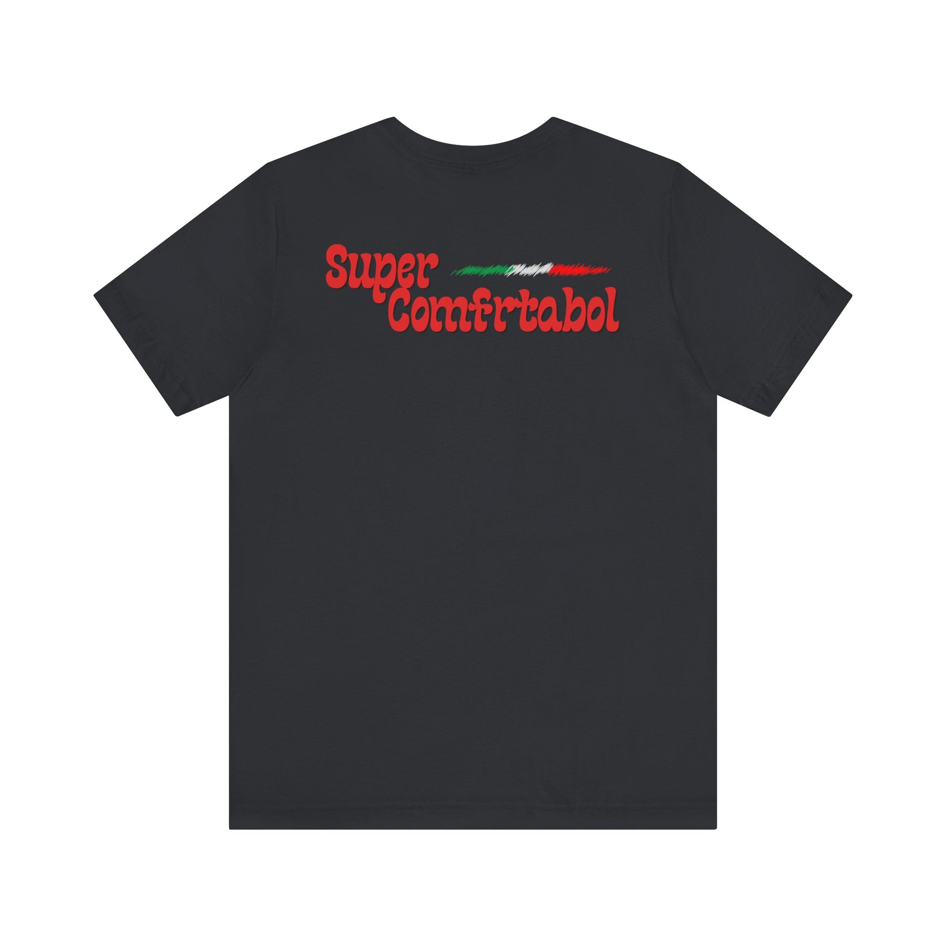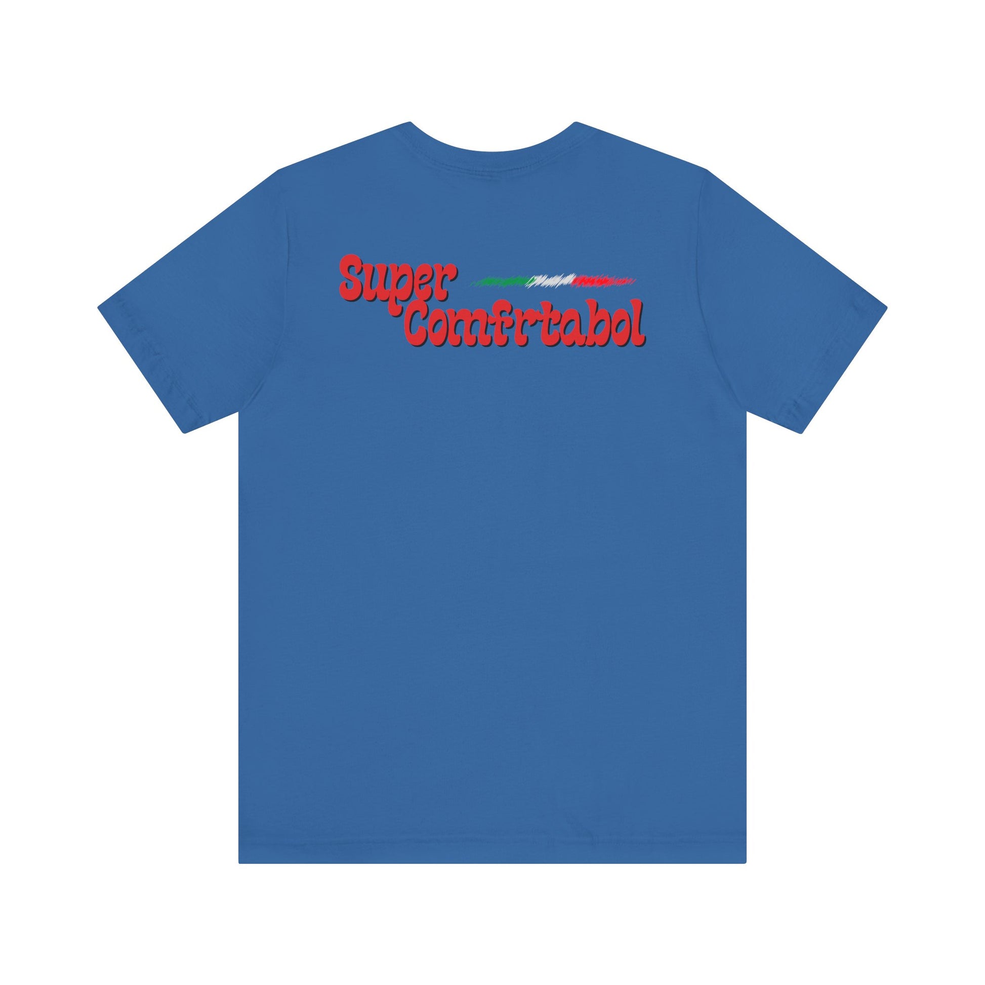 On the front, a mini Italian flag - draped in gold like your favorite jersey crest - sets the tone, while the back proudly displays our vintage “Super Comfrtabol” logo.