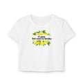 Printed on a buttery-soft, body-hugging crop top, it’s made for the girl who can flirt in four languages — but still checks credit scores.